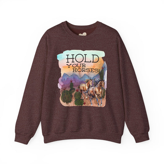 Hold Your Horses Unisex Crewneck Sweatshirt – Rustic Casual Wear