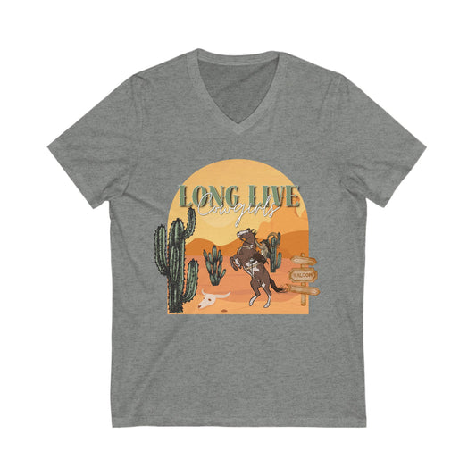 Long Live Cowgirl V-Neck Tee - Unisex Jersey Shirt for Western Style Lovers