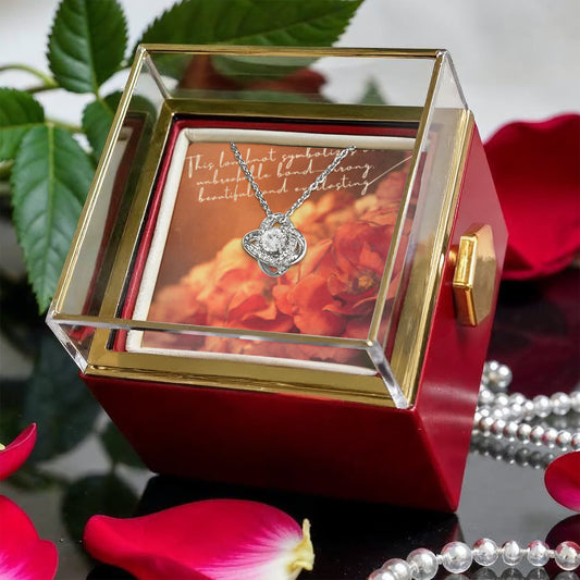Love Knot Necklace with Preserved Rose Gift Box – 14K White Gold Finish, Cubic Zirconia – Romantic Gift for Wife, Girlfriend, Anniversary or Birthday