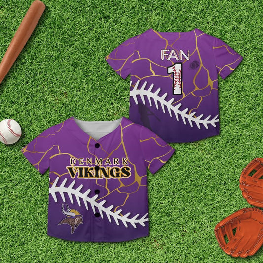 Denmark Vikings Fan All-over Print Kids and Youth Baseball Jersey